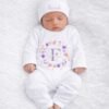 Crafted with a soft, elegant design and gentle colors, this romper is perfect for newborn photoshoots, hospital pictures, going-home outfits, or everyday wear. The matching cap completes the look, adding extra cuteness while keeping your baby girl cozy and warm.