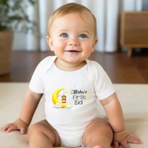 Looking for a meaningful First Eid gift? This custom baby outfit is a beautiful keepsake that families will treasure as a reminder of their baby’s first Eid celebration.