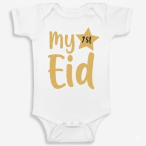 My First Eid Romper is a charming outfit designed specifically for little ones to celebrate their first Eid, a special occasion in the Islamic faith marking the end of Ramadan. This adorable romper features delicate details and soft fabrics, making it perfect for creating cherished memories on this joyous day.