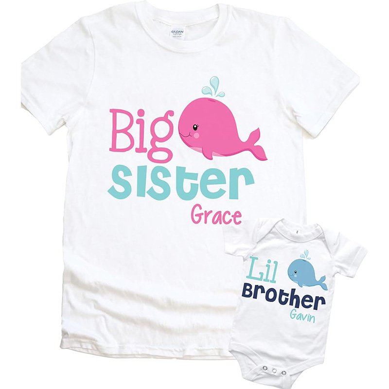 Make sibling moments even more special with our Personalized Whale Sibling Set, a cute ocean-inspired outfit designed for brothers and sisters to match in style. Featuring a charming whale design and customized with your children’s names, this set adds a playful and personal touch to their wardrobe.